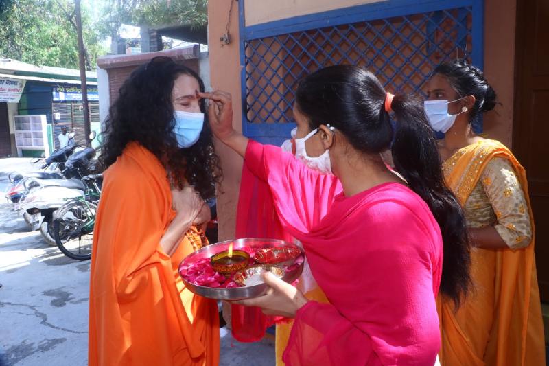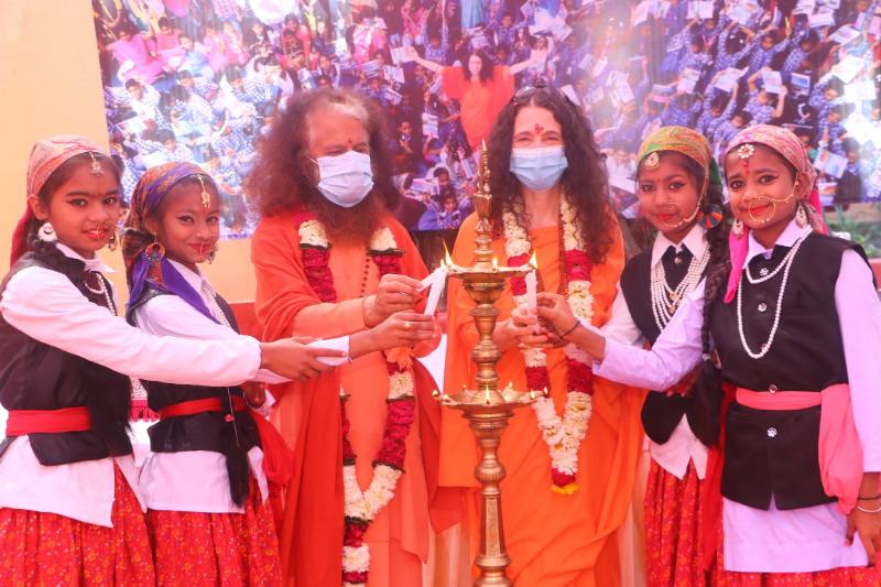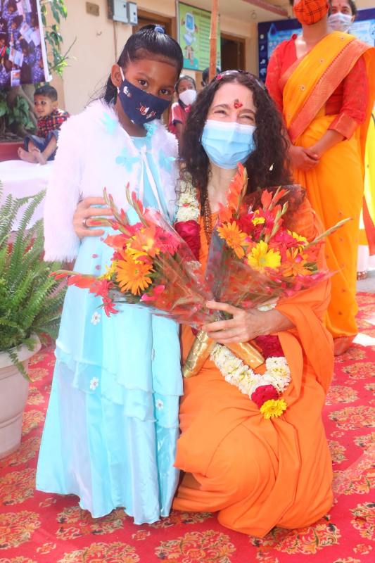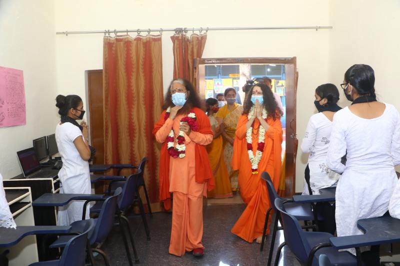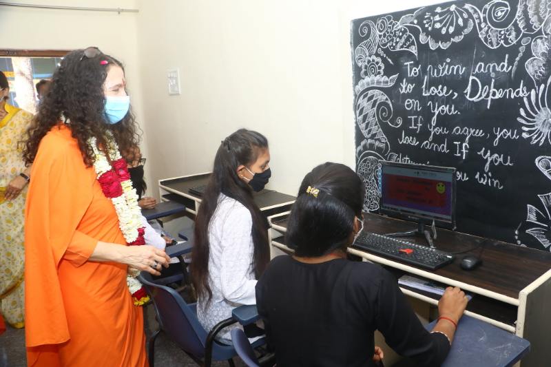 While at the event, Pujya Swamiji and Pujya Sadhviji toured the newly-expanded Centre of Excellence vocational training portion of the school. The program has been expanded to include computer training, yoga and karate, and there are plans to further expand the Centre’s offerings as Covid containment protocols are relaxed in the future.
