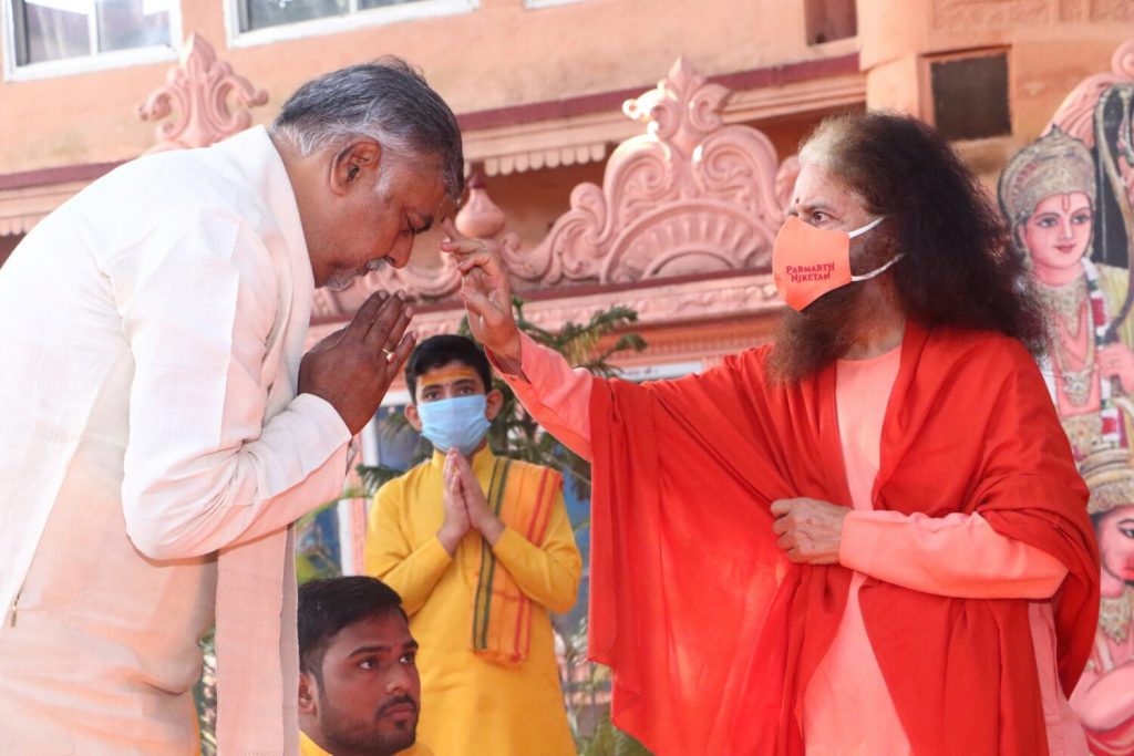 One of the most beautiful gifts that the festive seasons of India offer is the chance to welcome family home for the celebrations. Which is exactly what HH Param Pujya Swami Chidanand Saraswatiji did on the first night of Navratri as He and the entire Parmarth Parivar opened their arms and their hearts to welcome Prahlad Singh Patelji, the Minister of State for the Ministry of Jal Shakti, Department of Water Resources, RD & GR, back to his Himalayan Home!