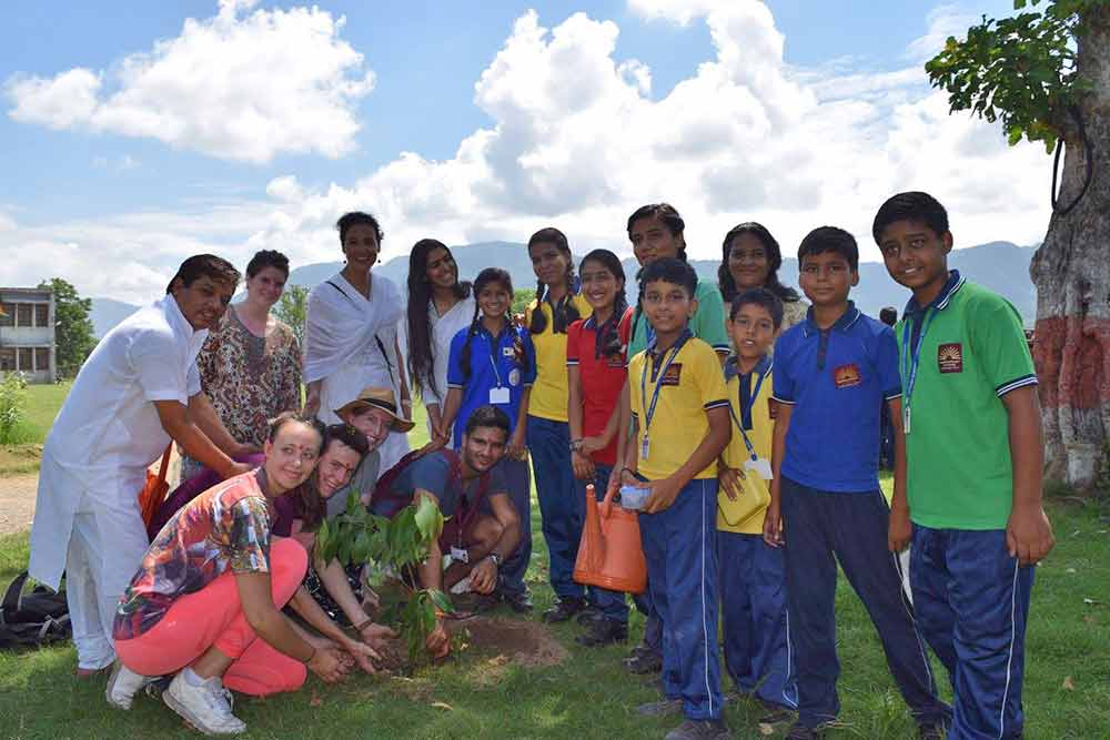With HH Pujya Swami Chidanand Saraswatiji’s inspiration and blessings a beautiful tree plantation, mid-day fruit distribution and clean up programme at the Kendriya Vidyalaya, IPDL Rishikesh took place today in which more than 30 students, coming from diverse backgrounds and different universities of the United Kingdom, studying in an International Short Term Program, on ” Social Entrepreneurship in Creating Sustainable and Scalable Social Change in India,” at the IILM Institute for Business & Management, Gurgaon, joined Ganga Action Parivar, Global Interfaith WASH Alliance (GIWA)- Parmarth Niketan Ashram in these efforts.