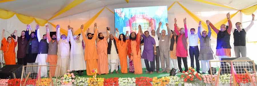 Pujya Swamiji led a Swachhta Sankalp (Pledge for Cleanliness) and inspired a beautiful water blessing ceremony with all the young children and artists.