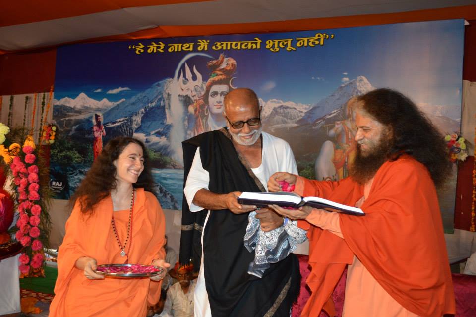 Pujya Morari Bapuji came to Parmarth and after his beautiful discourse, Pujya Swami Chidanand Saraswatiji and I presented him the new international edition of the Encyclopedia of Hinduism. Pujya Bapuji had done the first katha in the Kumbha Mela to raise awareness for the Encyclopedia when it was just a divine vision. It was such a honor to put the finished product in his hands. Of course we only actually put one of the 11 volumes in his hands (as they are SO beautifully heavy) and gave the other 10 volumes to take back to his ashram. It was such a beautiful joy and blessing to have him receive and unveil the finished work.