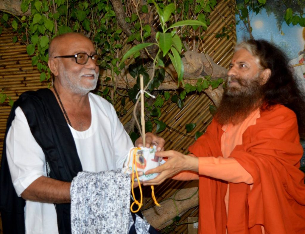 It was beautiful to have Pujya Sant Morari Bapuji grace his Himalayan Home at Parmarth Niketan, to give his divine darshan and blessings. During his visit, Pujya Swamiji and Pujya Bapuji discussed the importance of interfaith harmony, diversity and unity as the strong foundation of our nation. Pujya Swamiji shared with him about the recent Peace & Unity Summit, organised by the Jamiat Ulama-i-Hind, in Bihar. They were joined in discussion by Sadhvi Bhagawati Saraswati as they spoke briefly about the upcoming Kumbh Mela 2019 and how Parmarth Niketan, Global Interfaith WASH Alliance & Ganga Action Parivar would be supporting the efforts of the government to make it a Clean & Green Mela. He graciously agreed to bless and grace the Parmarth camp and support this noble mission. As he departed, Pujya Swamiji lovingly offered him a sacred Rudraksha sapling that Pujya Bapu said would be planted in Almora during his next katha.