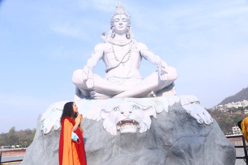 This year her birthday beautifully coincided with Mahashivratri (11th March), the Haridwar Kumbh Mela, the conclusion of our first ever online International Yoga Festival and the Hon’ble Speaker of the Lok Sabha Shri Om Birlaji and his families visit to Parmarth from the 13-14th March. On Shivratri she took part in a beautiful Shiva Abhishek and in the evening more sacred prayers and Rudrabhishek took place. The next morning a beautiful yagna on the iconic Shankar Bhagawan Ghat with her Guru Pujya Swami Chidanand Saraswatiji – Muniji and Parmarth family. Thereafter she took a joy filled Ganga Snan with devotees and sevaks bathing in the sacred waters of Maa Ganga.