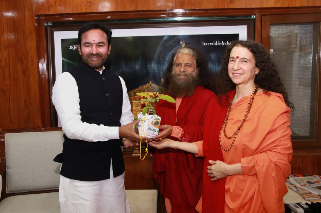 माननीय पर्यटन मंत्री, भारत सरकार श्री जी किशन रेड्डी जी को स्वामी चिदानन्द सरस्वती जी और साध्वी भगवती सरस्वती जी ने रूद्राक्ष का पौधा भेंट किया।