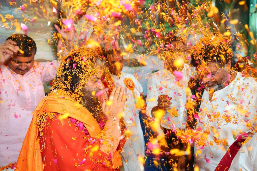 There was a special Ganga Aarti ceremony which was graced by Hon’ble Urban Development Minister Shri Madan Kaushikji as he wished Pujya Swamiji Maharaj prefusely on his divine leadership and inspiration to the progress, prosperity and direction of the Himalayan State. He was joined by the Mayor of Rishikesh and other dignitaries in offering him a huge flower garland. Buddhist monks led by Ven Khenpo Rangdolji offered special Long Life prayer for Pujya Swamiji.