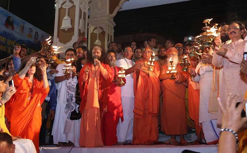 The saints who graced and blessed the ceremony were: H.H. M.M. Pujya Swami Gurusharananandji Maharaj of Sri Udasin Karshni Ashram H.H. M.M. Pujya Swami Asanganand Saraswatiji Maharaj, H.H. M.M. Pujya Swami Avdheshanand Giri Ji Maharaj, H.H. M.M. Pujya Swami Harichetanandji Maharaj, H.H. Pujya Acharya Bal Krishna ji, H.H. Pujya Brahmachari Brahmaswarupji Maharaj, H.H. Swami Shri Govind Dev Giri ji Maharaj Pujya Mahant Mohandasji, Pujya Baba Hath Yogiji, Pujya Mahant Rishishwaranad Maharaji , Pujya Mahant Durgadasji, Pujya Sadhvi Bhagawati Saraswatiji and many others.