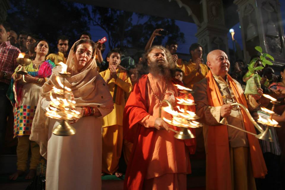 Punam Sinha, Indian actress and producer, also the wife of famous Bollywood actor-politician Shatrughan Sinha, the mother of twin brothers actor Luv Sinha and Kush Sinha and the mother of beloved Bollywood actress Sonakshi Sinha, came home to perform Ganga Aarti with Pujya Swamiji on the banks of Mother Ganga at Parmarth Niketan (Rishikesh). After visiting Kedarnath earlier in the day she was so touched and moved to hear about the plethora of service projects that Pujya Swamiji was leading under the Project Hope initiative to bring hope and healing to survivors of the devastating Himalayan Tsunami last year. She was especially eager to contribute to Pujya Swamiji’s efforts to provide livelihoods and empowerment to widows who had lost their husbands and/or their families in last year’s floods. Amongst many things, Pujya Swamiji inspired her to pledge and offer her divine shakti for Water, Sanitation and Hygiene (WASH), starting with providing clean and safe water and sanitation in her own hometown of Bihar.