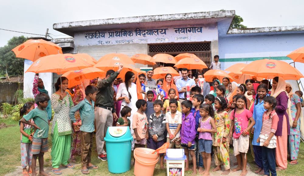 In their Naya Gaon village visit, they held a community meeting with the villagers, especially the women and the children, distributed sanitation supplies, led a pledge to renew their commitment to an ODF village as well as planted several fruit trees in its premises as a symbol of their clean and green pledge.