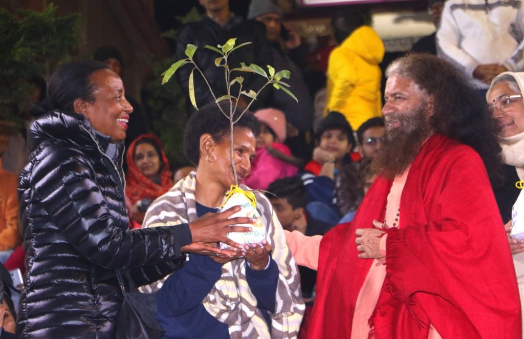 While here for her five-day visit, Ms Piccin and Ms Mbere joined the Ashram’s Special New Year’s Spiritual Retreat, where they participated in the world-renowned #GangaAarti with Pujya Swamiji and Sadhviji, as well as in a tree plantation ceremony with Hon’ble Minister Shri Pandeyji, signifying their commitment to conserving, preserving and protecting all of Creation.