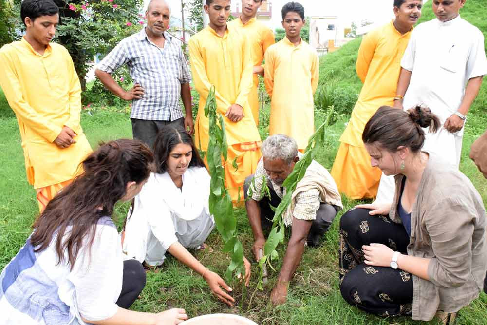 In celebration of the monsoon and the ongoing Swachh Rail, Swachh Bharat initiative by the Government of India and India’s dynamic Railway Minister, Shri Suresh Prabhuji, students from several countries gathered together at the Rishikesh Railway Station to plant trees, clean up and visit the site. This project tarted with the inspiration and blessing of Pujya Swamiji, under-taken by the Ganga Action Parivar, of which He is the Founder, and Parmarth Niketan Ashram, of which He is the President, to make the railway station a model clean, green and serene station.