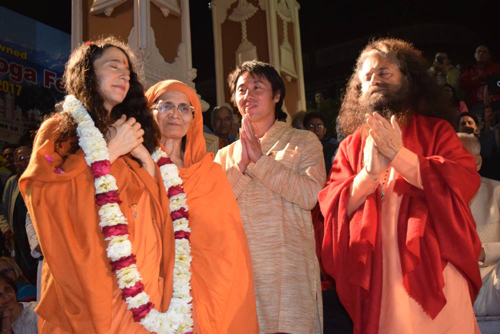 During the evening Havan and Ganga Aarti ceremony, Pujya Swamiji shared Sadhviji’s inspiring story with everyone and her journey from Hollywood to the Holy Woods. While sharing her story, Pujya Swamiji said so beautifully, “Even though coming to Rishikesh, India, nearly twenty years ago was not planned for her, even though Rishikesh may have just happened, I truly believe she happened to Rishikesh. She has been truly pivotal in bringing the true, authentic and sacred spirit of Rishikesh to the world and adding this small town to the world map, bringing its touch and transformation to millions.”
