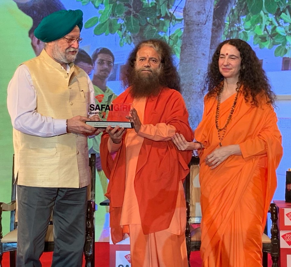 India Today Aaj Tak’s Annual SafaiGiri Awards was conferred to Pujya Swami Chidanand Saraswatiji, Founder/Chair, Global Interfaith WASH Alliance, and Sadhvi Bhagawati Saraswati, Secretary General, GIWA, for the Best Sanitation Institution for the work Global Interfaith WASH Alliance has done to bring faith into action for water, sanitation and hygiene. It particularly recognized GIWA’s World Toilet College to train, educate and build capacity for thousands of sanitation professionals. The World Toilet College is a joint partnership with Reckitt Benckiser and Banega Swasth India- Dettol India.