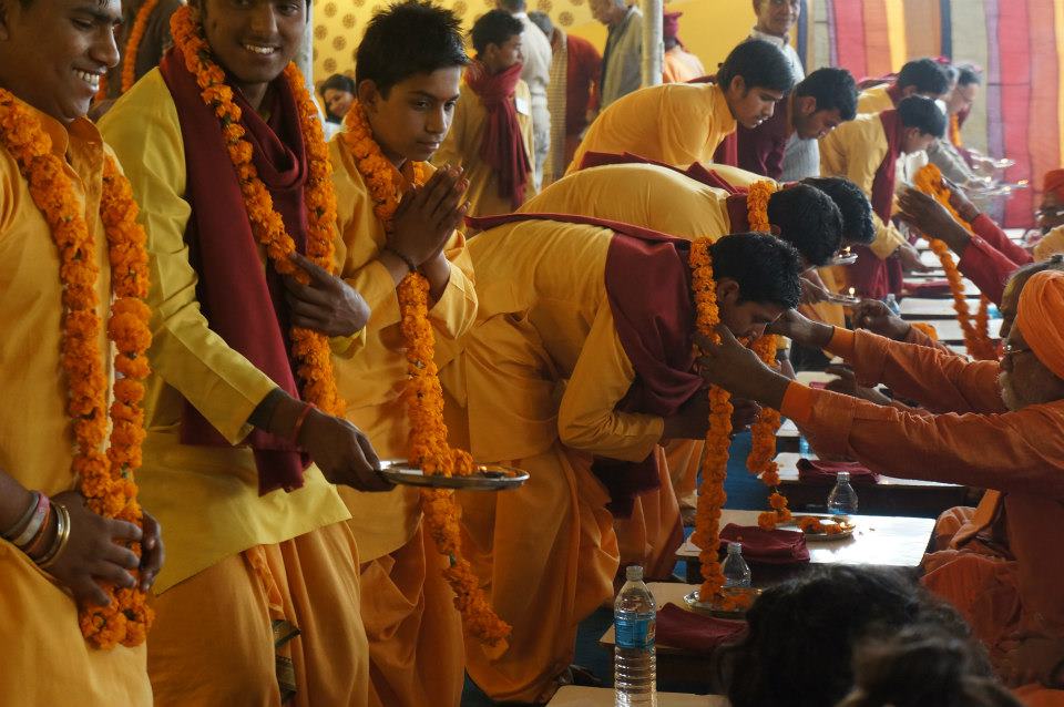 At the end of the bhandara saplings were offered to saints welcoming them to join and support Parmarth and Ganga Action Parivar’s Green Initiatives and become green ambassadors. They were encouraged to plant trees for just as the food nourishes us, the trees and plants nourish the soil, air and Mother Earth.