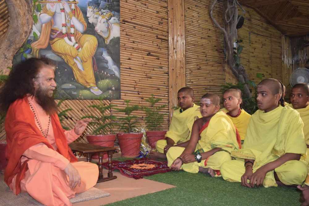 Beautiful young Gurukul students from the Sri Veda Bharati Peetam joined us from Telangana recently to seek blessings from Pujya Swamiji and Sadhvi Bhagawati Saraswatiji, take part in the divine evening Ganga Aarti ceremony and were inspired to join for a special water blessing ceremony. They were glad to learn from Pujya Swamiji and Sadhviji all the wonderful work the Global Interfaith WASH Alliance and Ganga Action Parivar was doing to improve water, sanitation and hygiene for everyone every where. They were also glad to learn the alchemical effect of the recitation of Vedic mantras on energizing water and other natural elements. They were encouraged to be ambassadors for improved WASH for all.