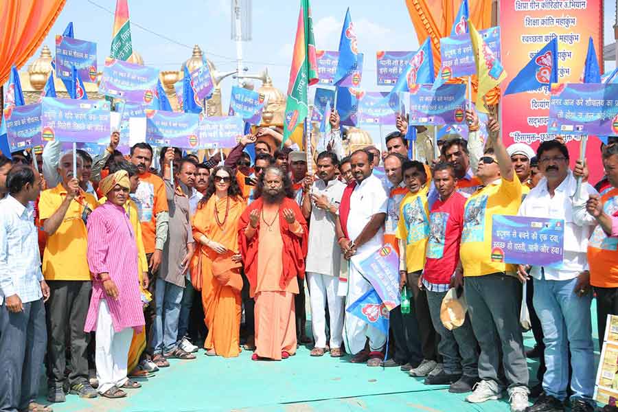 The rally completed as it reached Prabhu Premi camp, where Junapeethadheshwar Pujya Swami Avdheshanand Giriji Maharaj blessed the cause. There was inspiring talks and speeches on the need for a revolution in our education system which re-establishes Swachhta (Cleaniness) and environmental preservation as a fundamental and vital sanskar (value).