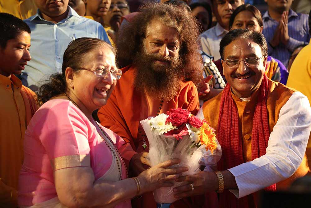Sumitra Mahajan, Speaker of the Lok Sabha, Government of India, currently the longest-serving woman member of Lok Sabha, received divine blessings of Pujya Swami Chidanand Saraswatiji – Muniji, Pujya Swami Shri Govinda Dev Giri ji Maharaj & Pujya Sadhvi Rithambara – “Didi Maa”ji during her three day stay and visit to Parmarth Niketan (Rishikesh), which coincided with her 75th birthday.