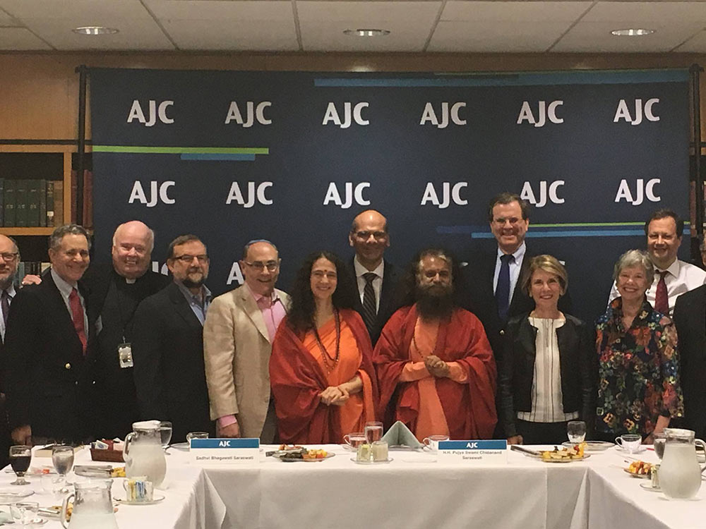 The AJC – Global Jewish Advocacy (AJC) hosted a special reception for Pujya Swamiji, President of Parmarth Niketan, Co-founder of the Global Interfaith WASH Alliance (GIWA), and Sadhvi Bhagawatiji, Secretary-General of GIWA, at their International headquarters in New York City, led by Rabbi Noam E Marans, Director, Interreligious and Intergroup Relations, AJC.