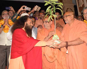Pujya Swami Madhavpriyadasji led everyone in a beautiful sankalp about the fruition of his Swachh Bhaart pledge on the banks of Mother Ganga by engaging over 108 villages in this mission. He shared that the time had come that we must carry jadu (broom) in one hand and japa mala (rosary) in the other. He shared, “Sanitation must truly become our meditation in order for us to collectively change the dire sanitation and hygiene needs of our nation, protecting the lives of over 1200 young children who perish every day due to lack of WASH.” He had everyone raise their hands together to pledge and vow to work towards this mission, promoting open defecation-free India and being the change they want to see.