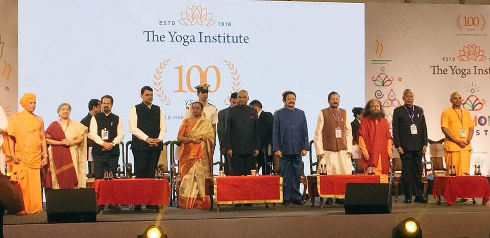 The Harmony Festival, celebrating 100 years of The Yoga Institute*, was inaugurated in a beautiful event at the MMRDA Grounds, BKC in Mumbai yesterday by the Hon’ble President of India Shri Ram Nath Kovindji, Hon’ble Governor of Maharashtra Shri Vidyasagar Raoji, Hon’ble Chief Minister of Maharashtra Shri Devendra Fadnavis, Hon’ble Union Minister of AYUSH Shri Shripad Naikji, Hon’ble Mayor of Mumbai Shri Vishwanath Mahadeshwar, Director of TYI Dr Hansaji J Yogendra, Pujya Swami Chidanand Saraswatiji – Muniji, Gaur Gopal Dasji, Padma Shri Swami Bharat Bhushanji, Acharya Dr Lokesh Muniji and many other yoga experts and dignitaries.