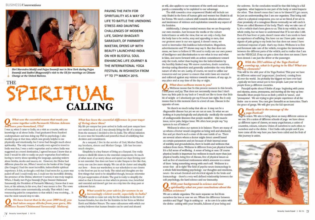 “The Spiritual Calling”, Beauty Launchpad, February 2015 – Parmarth Niketan