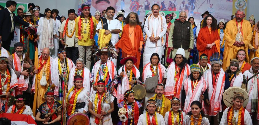 Prayagraj: Resplendent in colorful robes adorned with feathers and a kaleidoscope of patterns, tribal leaders from across the world welcomed Hon’ble Vice President of India Shri Venkaiah Naidu and Hon’ble Uttar Pradesh Governor Shri Ram Naik in an unforgettable moment of global unity.
