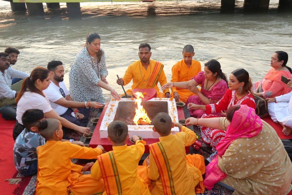 परमार्थ निकेतन आयी टीवी एक्टर निया शर्मा। उन्होंने परमार्थ निकेतन गंगा आरती और विश्व शान्ति हवन में सहभाग किया।