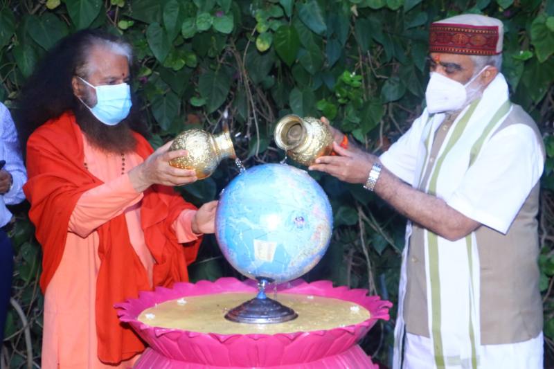 The Honble Minister lauded Pujya Swamiji’s efforts and contributions towards protecting and preserving our culture as well as inspiring countless many across the world to protect their environment and the sacred Rivers. They remembered the 2013 Floods and led a beautiful pledge for environmental protection.