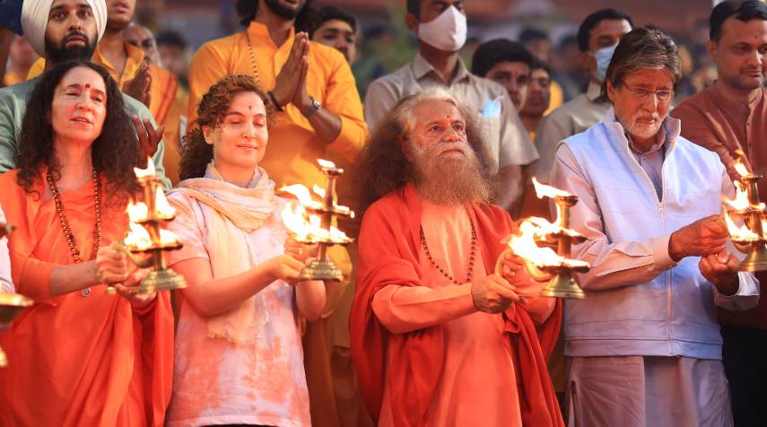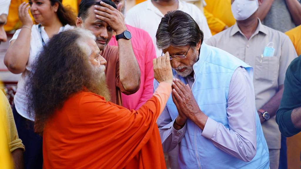 During the Aarti, Bachchan received a sacred Rudraksha sapling and an Angvastra, and later participated in the traditional sacred water blessing ceremony in Pujya Swamiji’s jhopri, where the faith leader offered His thoughts on the importance of Uttarakhand in India’s film industry: “So many films have been shot in Uttarakhand. Our Uttarakhand is the best destination for films. It’s the Best Spiritual Destination, the Best Wildlife Destination, the Best Adventure Destination. And the holy valleys of the Himalayas and the holy banks of Maa Ganga are Best Destinations themselves. Uttarakhand is now becoming one of the most favorite destinations in the world. And in order to keep our beloved state as the best destination in the world, we have to keep this state green and clean, and we must keep the culture and rites alive.”