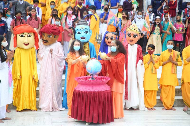 The celebration began in front of the Parmath Niketan ashram at 10AM on Monday, March 22, 2021, on the Ganga Ghat with students, HH Pujya Swamiji and Pujya Sadhvi Bhagawati ji inspired and ignited passion for a people’s led movement for water consveration. Pujya Sadhvi Bhagawatiji expressed, “The cycle of life is intricately linked to water; it is even, perhaps, embedded in water. From our first nine months swimming in a womb to our ashes being immersed in a sacred river or scattered across the ocean, from the essential nectar we drink to that which turns apple seeds into apple trees, water is an integral part of our very existence….however if we don’t protect this sacred resource it won’t be long until we will have no more water. It is time for us to wake up and realise the time to act is now!”