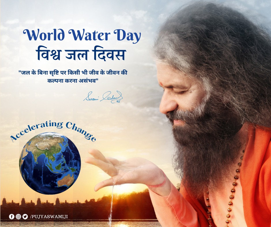 विश्व जल दिवस के अवसर पर पूज्य स्वामी जी का संदेश जल की हर बंूद में जीवन है, जल हमारे जीवन का आधार है। हमें याद रखना होगा कि पानी बचेगा तो प्राणी बचेंगे, जल बचेगा तो जीवन बचेगा, जीविका बचेगी और सम्पूर्ण मानवता बचेगी।