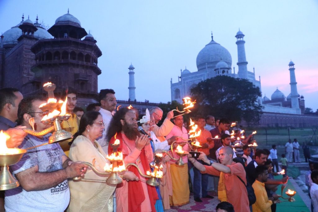 The Hon’ble Governor shared during the Aarti ceremony, “I had urged Pujya Swami Chidanand Saraswatiji to visit Agra to perform the divine Aarti ceremony here and to inspire us to clean and green the city. I am so glad that he has joined us today and I urge him to continue coming every 2-3 months to add momentum to this noble beginning.” She added, “Agra is known for the Taj Mahal but let it also be known for its rejuvenated and clean River Yamuna, because Yamuna is the very lifeline of the city and the inspiration of millions of devotees worldwide.”
