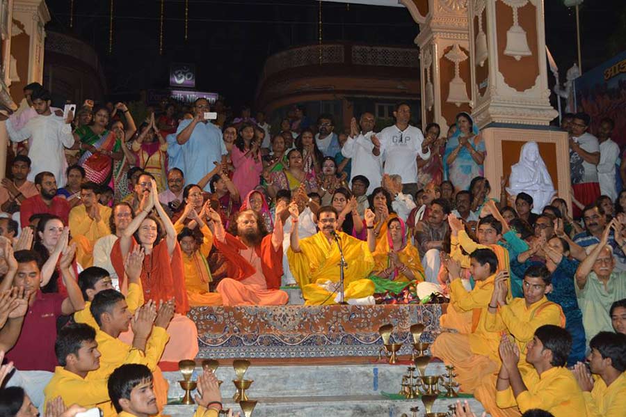 Pujya Swami Chidanand Saraswatiji, President of Parmarth Niketan Ashram (Rishikesh), Founder of Ganga Action Parivar, and eminent kathakar Pujya Acharya Mridul Krishan Shastriji, from Vrindavan, united on the banks of Mother Ganga. The inspired a mass pledge to protect Mother Nature and all water bodies, especially the endangered River Ganga and the River Yamuna. Their time together was infused with beautiful chants of Radhe-Radhe, ecstatic singing and divine Ganga Aarti. They also had detailed discussions on working together as the Yamuna Action Parivar to restore and protect the sacred Yamuna as well as utilize the upcoming Ujjain Kumbha Mela and other occasions to inspire action for preserving and protecting our endangered natural resources.