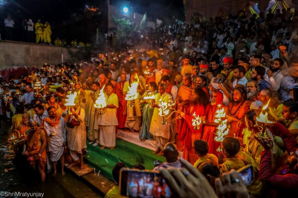 Pujya Swami Chidanand Saraswatiji – Muniji joins a galaxy of saints on #SharadPurnima on the banks of the #Yamuna River in #Vrindavan-#Mathura under the leadership of Karshnipeethadeshwar Pujya Swami Gurusharananandji in a pledge to protect #water, #nature, #culture & our #future!