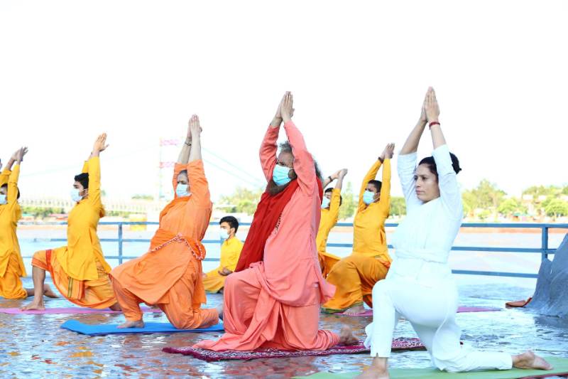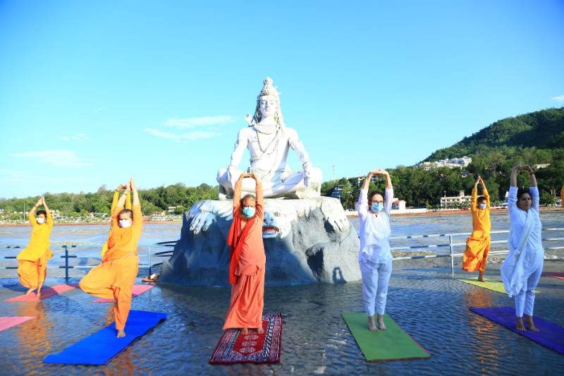 Special International Day of Yoga live Morning Session from the world famous Parmarth Niketan Ashram in Rishikesh, Uttarakhand, on the holy banks of Mother Ganga, in the lap of the Himalayas, with the divine presence, blessings and inspiration of HH Pujya Swami Chidanand Saraswatiji – Muniji, inspiring message of Pujya Sadhvi Bhagawati Saraswatiji on the occasion, who is currently travelling abroad but joined the celebrations online. The Common Yoga Protocol session was conducted by Pujya Sadhvi Abha Saraswatiji, Yogacharya Dr Indu Sharmaji, Ganga Nandini, Parmarth Rishikumars and Family at the feet of the iconic Lord Shiva of Rishikesh.