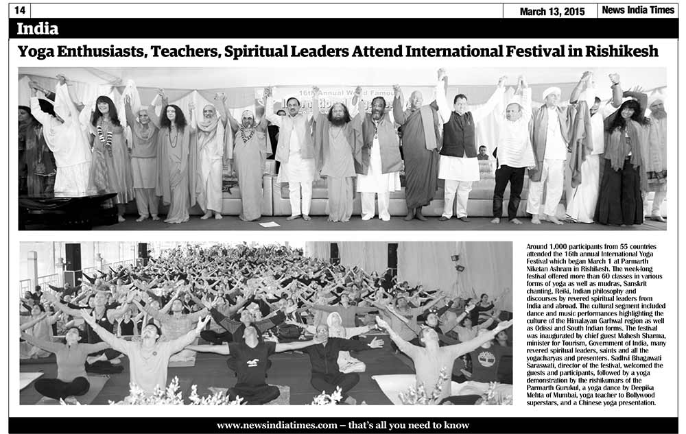 “Yoga Enthusiasts, Teachers, Spiritual Leaders Attend International Yoga Festival”, News India Times – Parmarth Niketan